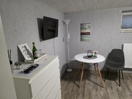 In den Zimmern befindet sich ein 140 cm breites Bett, welches auch zwei Personen genügend Platz zum erholsamen Schlaf bietet. Betten und Bettwäsche sind neu und werden von uns gestellt. DVBT-HD2-TV ist per Flachbildschirm in jedem Zimmer vorhanden. Ebenfalls kostenloses WLAN.